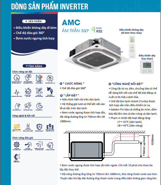 Máy lạnh âm trần Samsung 1 hướng thổi Inverter AC035TN1DKC/EA