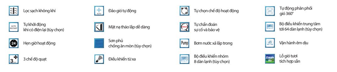 – Công suất đa dạng phù hợp lắp đặt cho các không gian như nhà xưởng, văn phòng, nhà hàng.