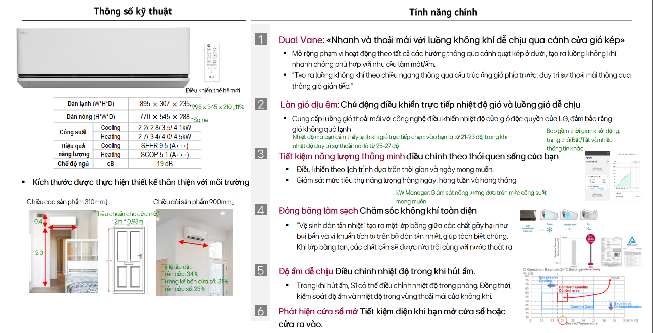 Nếu diện tích phòng nhà bạn nhỏ hơn 20 m2 hoặc lớn hơn 20 m2 thì có thể tham khảo qua 2 dòng máy lạnh treo tường LG có công suất bé hơn: