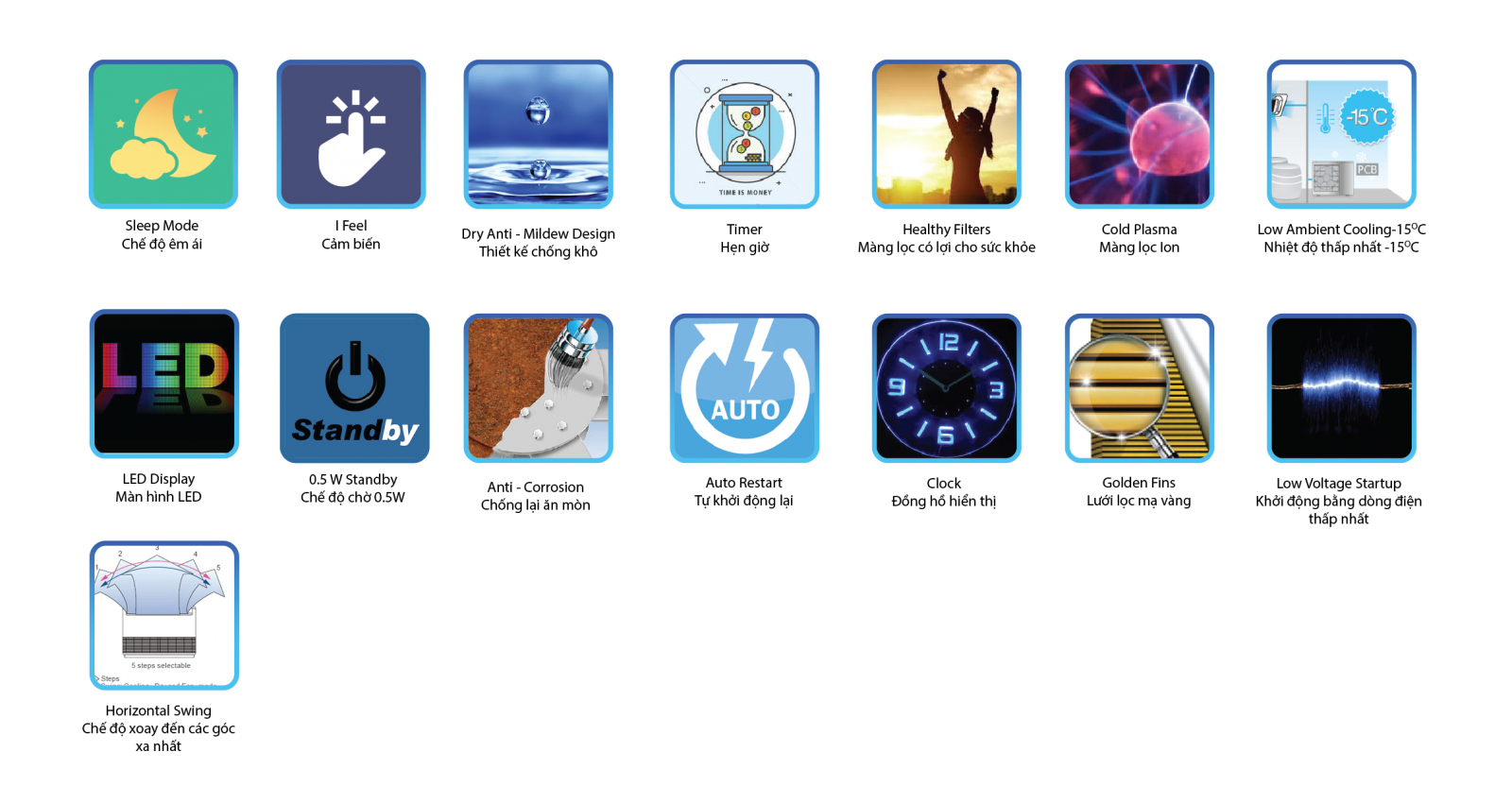 Bảo hành: 36 tháng, máy nén khí 5 năm, 1 đổi 1 trong vòng 1 năm đầu.