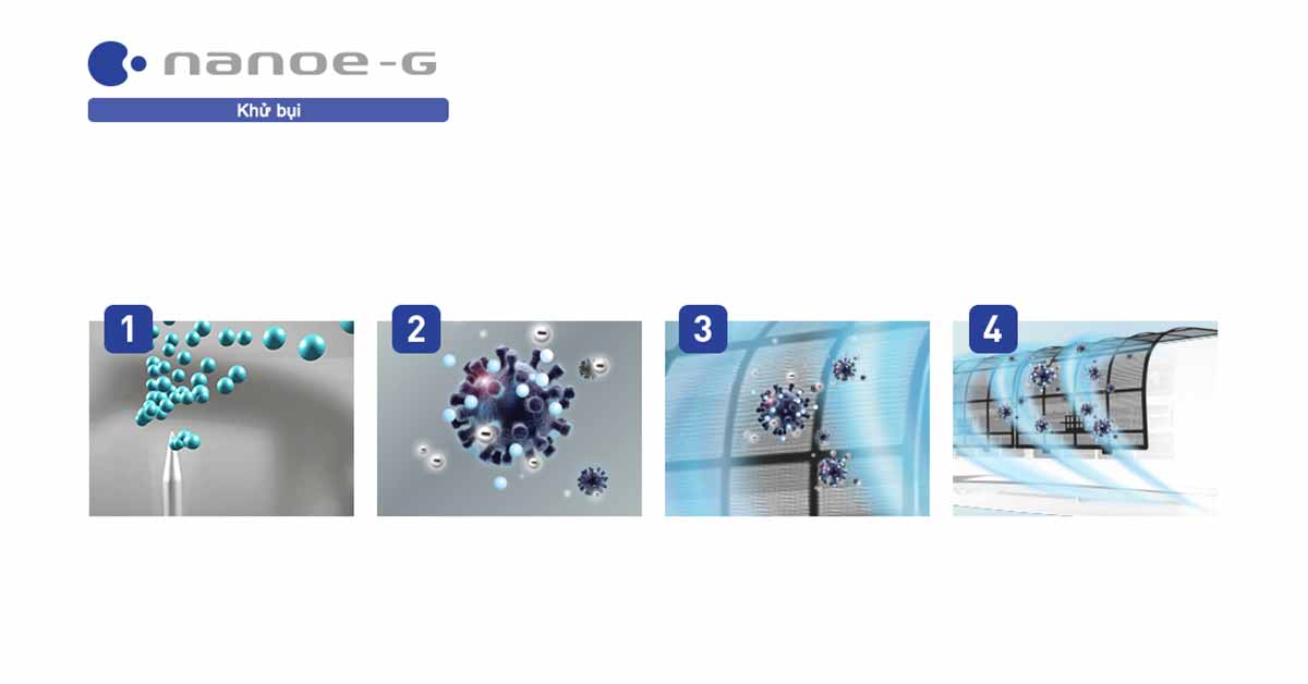 Máy lạnh Panasonic trang bị công nghệ Nanoe-G có chức năng giải phóng các ion giúp bắt giữ các hạt lơ lửng trong không khí, loại bỏ bụi bẩn trong không khí, đồng thời vô hiệu hóa các phân tử bám dính và khử mùi hôi của các chất bám dính trên đồ vật, cũng như vô hiệu hóa vi khuẩn và virus bám tại màng lọc. Gia đình bạn sẽ luôn được tận hưởng những luồng khí trong lành, sạch sẽ và mát lạnh nhất.
