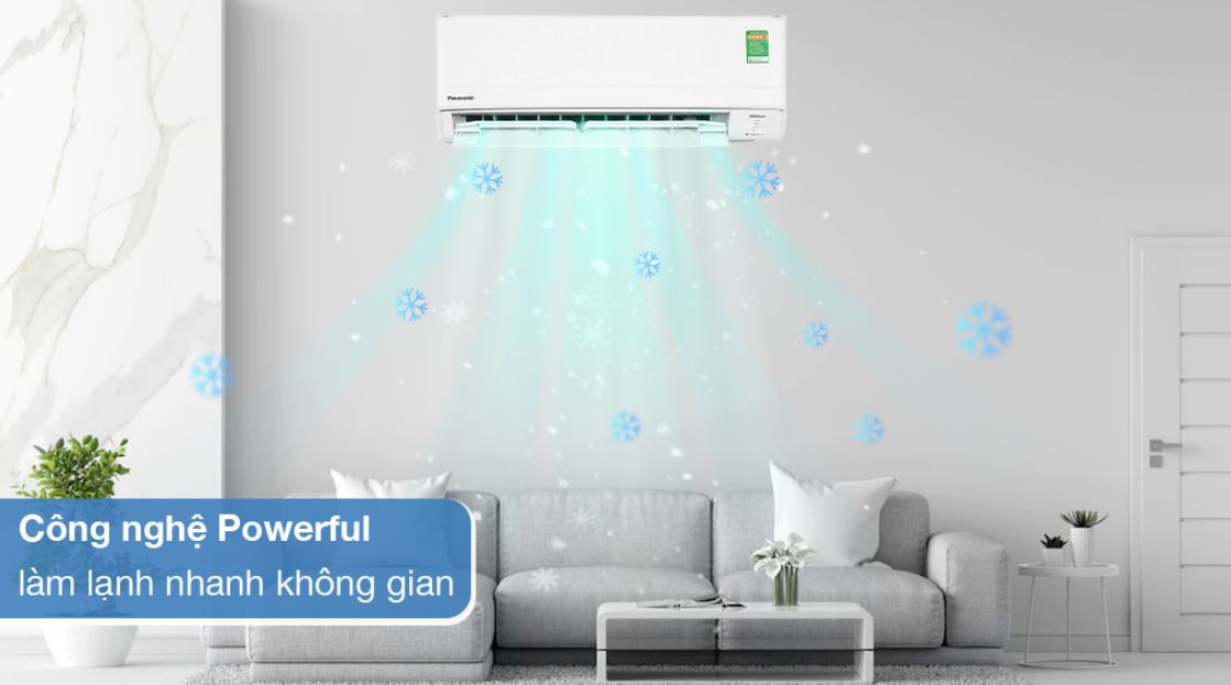 Máy lạnh Panasonic được trang bị tính năng làm lạnh nhanh Powerful giúp không gian mát lạnh gần như ngay lập tức sau khi mở. Bạn sẽ được tận hưởng không khí trong lành, mát mẻ ngay lập tức mà không phải chờ đợi.