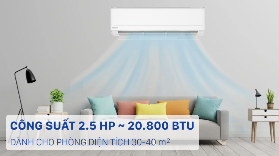 Nếu căn phòng có diện tích lớn khoảng 30 – 40m2 (từ 80 – 120 m3) như phòng khách, phòng ăn hay văn phòng thì chiếc máy lạnh Panasonic với công suất làm lạnh 2.5 HP ~ 20.800 BTU sẽ là sự lựa chọn vô cùng hợp lý.