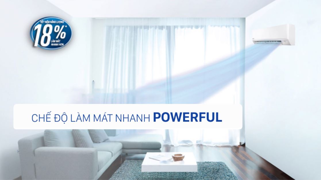 Chế độ làm lạnh nhanh Powerful làm mát căn phòng trong tích tắc