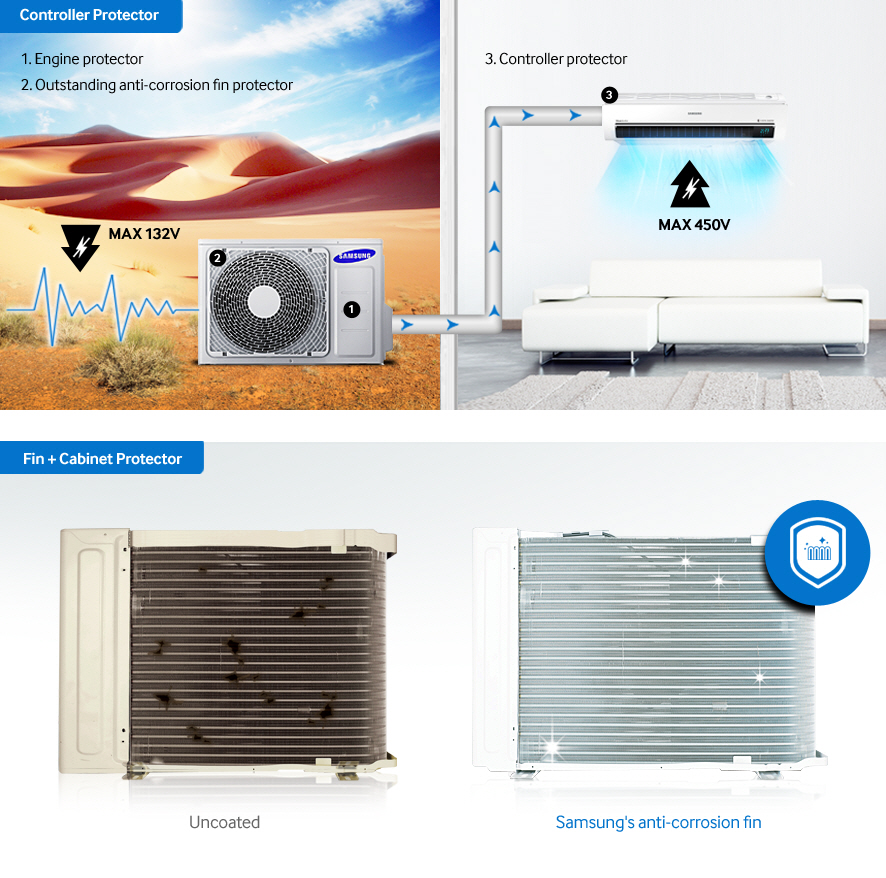 Không giống như các bộ lọc trên các máy điều hoà khác thường rất khó vệ sinh. Lưới lọc trên máy điều hoà Samsung được lắp đặt bên ngoài, phía nắp trên. Do đó, nó có thể dễ dàng được tháo ra, chùi rửa rồi lắp vào mà không cần thao tác mở nắp hoặc kéo mạnh.