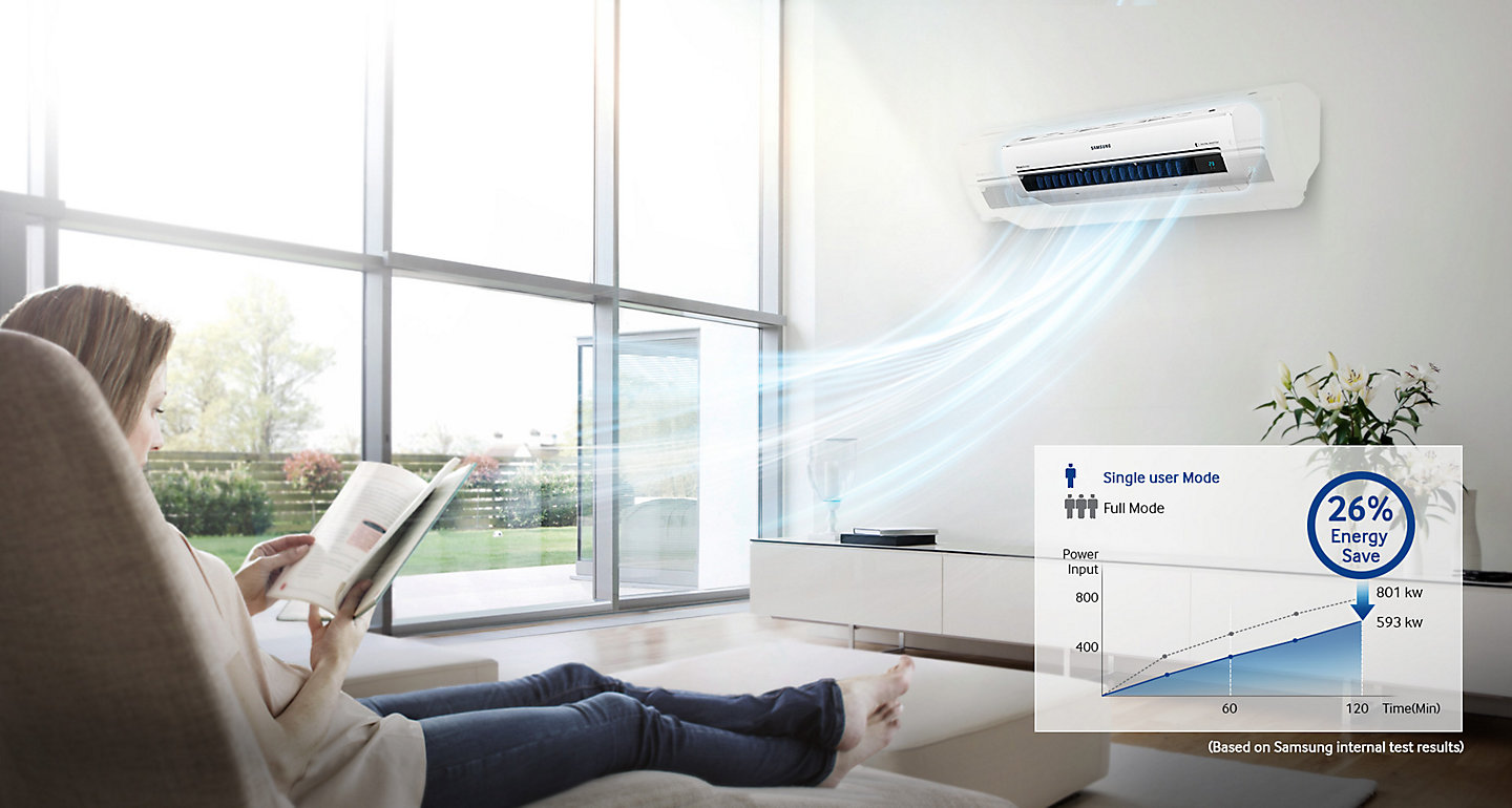 Khi chỉ có một mình, bạn hoàn toàn có thể yên tâm sử dụng điều hòa mà không cần nghĩ đến hóa đơn tiền điện cuối tháng với chế độ Một Người Dùng (Single User Mode). Với chế độ này, máy nén hoạt động với công suất thấp hơn, giúp tiêu thụ điện năng ít hơn mà vẫn đảm bảo không khí mát lạnh.